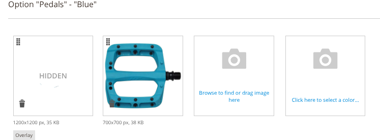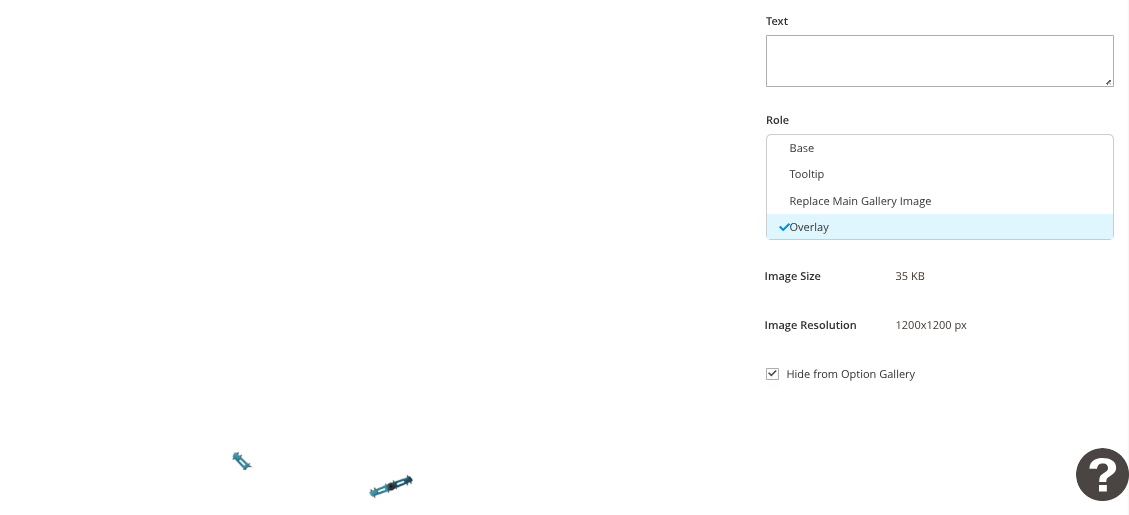 As well as being able to add overlay images to each option, we can also add secondary images. These are very useful in cases where you might want to show that product option in more detail (zoomed in for example)