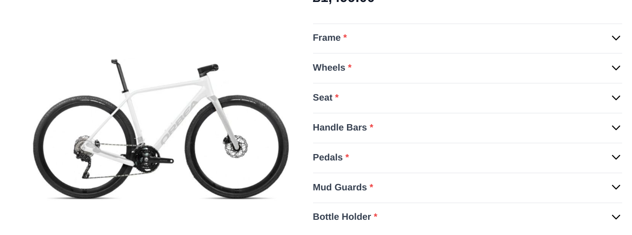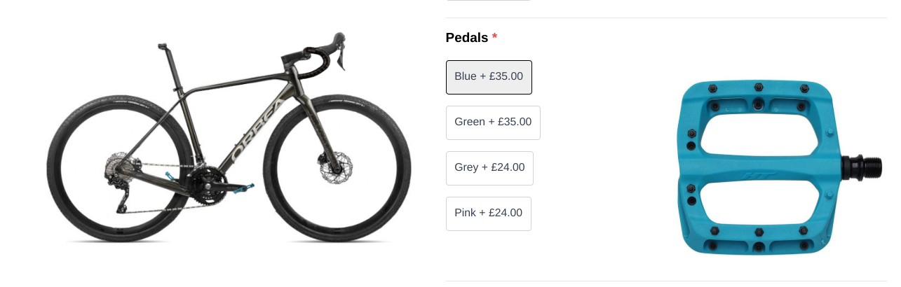 The bike has an option for pedals. Inside this option are four values which allows the user to choose the colour of the pedals.