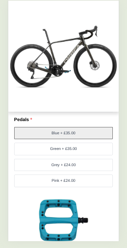 "Pedals" is an option which has four values the user can select, in this case these are different colours