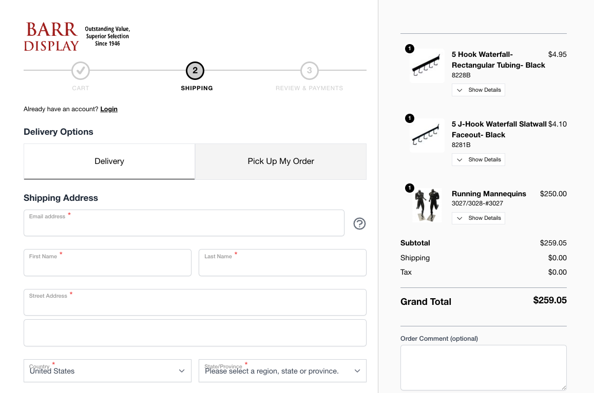 Pictured to the right is Barr Display, the first customer we implemented Instore Collect for Hyvä Checkout.